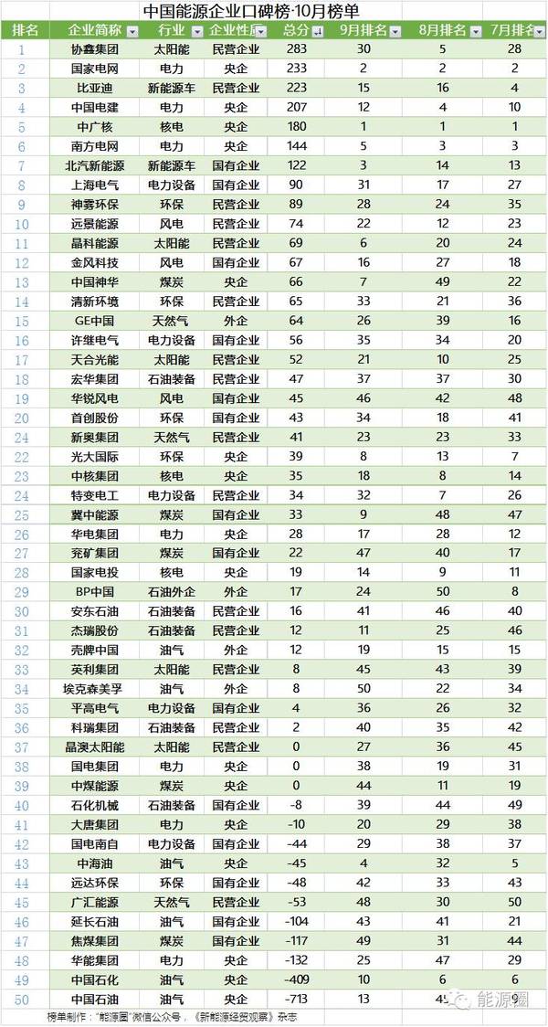 中國能源企業(yè)口碑榜-10月榜單總評(píng):一個(gè)企業(yè),總要拿業(yè)績(jī)說話