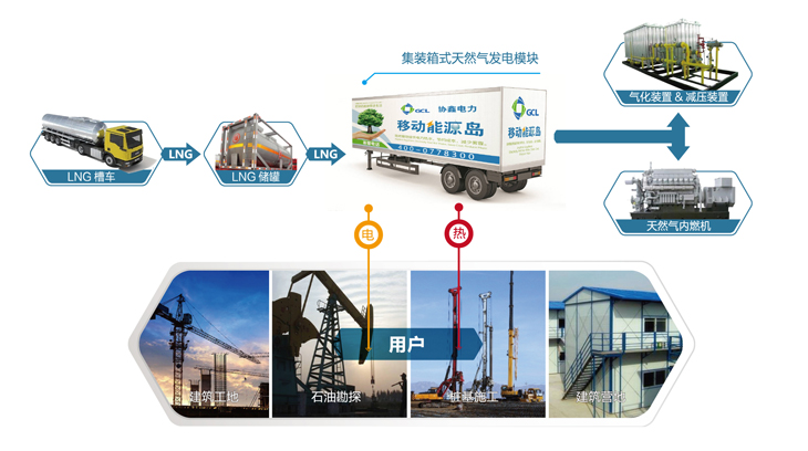 協鑫LNG移動能源站項目因其能效利用合理、損耗小、污染少、運行靈活、系統經濟性好、運行成本低、自動化程度高等多種不可替代的優勢,顛覆了傳統能源的生產和消費模式,為工廠、工地、臨時電源采用天然氣等清潔能源替代柴油發電機邁出了堅實的一步。