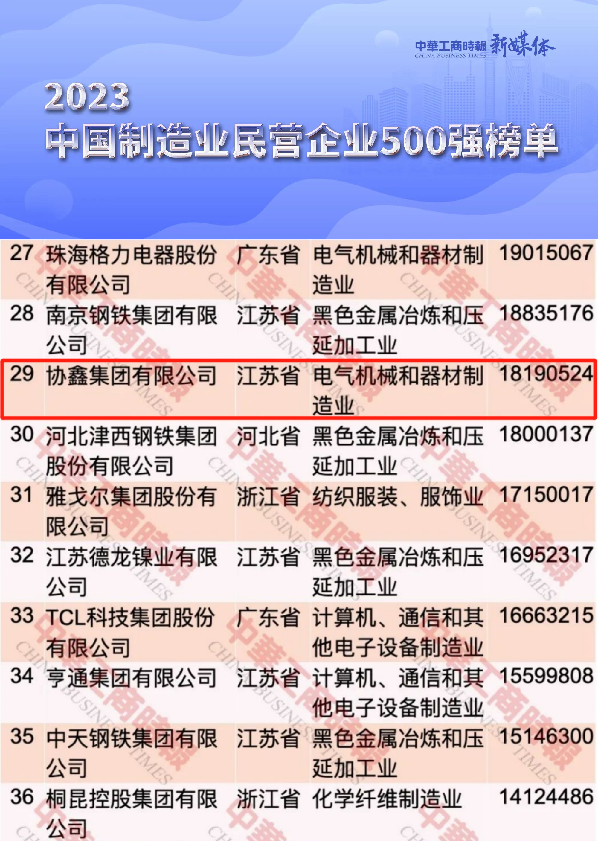 躍升22!協鑫集團上榜2023中國民企500強40位