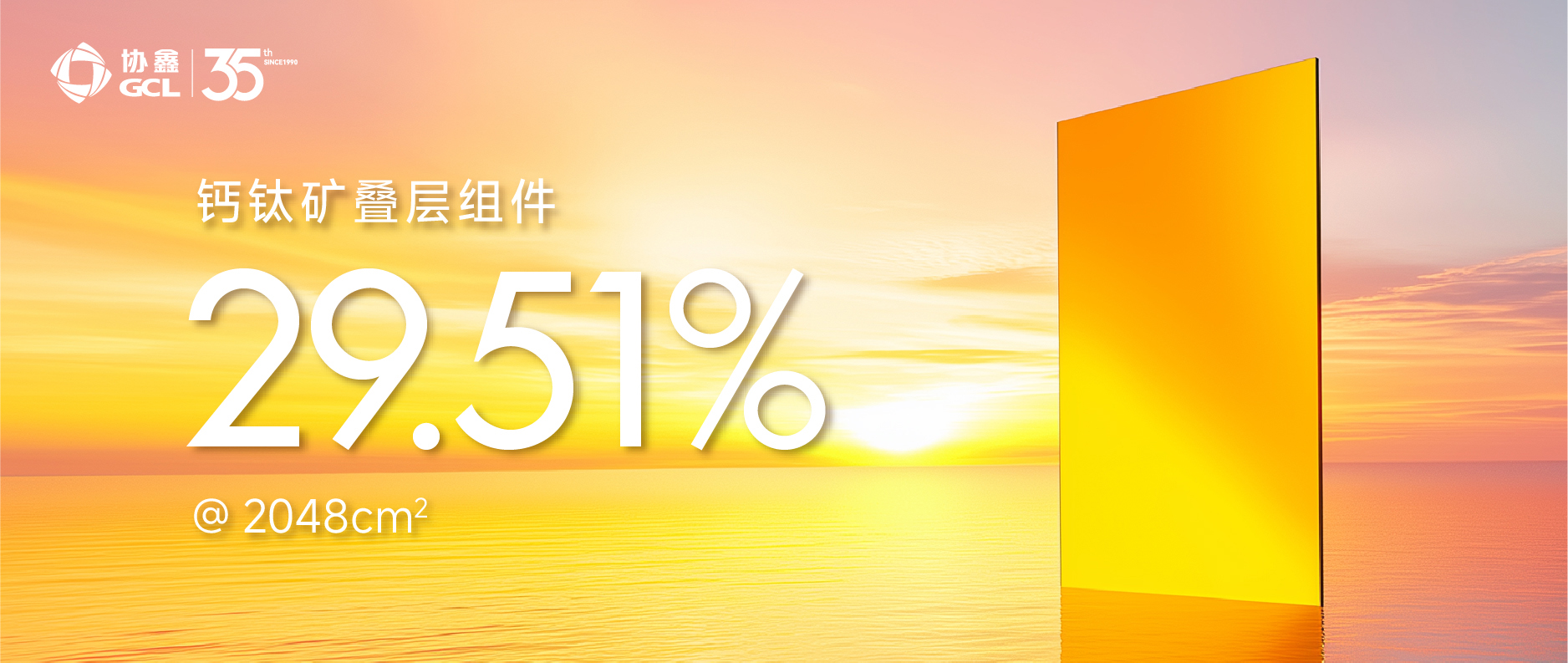 5月30日,經中國計量科學研究院權威認證,協鑫集團自主研發的2048cm2鈣鈦礦/晶硅疊層光伏組件穩態光電轉換效率達到29.51%,不僅刷新其一直保持的全球大尺寸鈣鈦礦組件效率紀錄,更以“中國智造”的硬核實力,向世界展示了鈣鈦礦技術商業