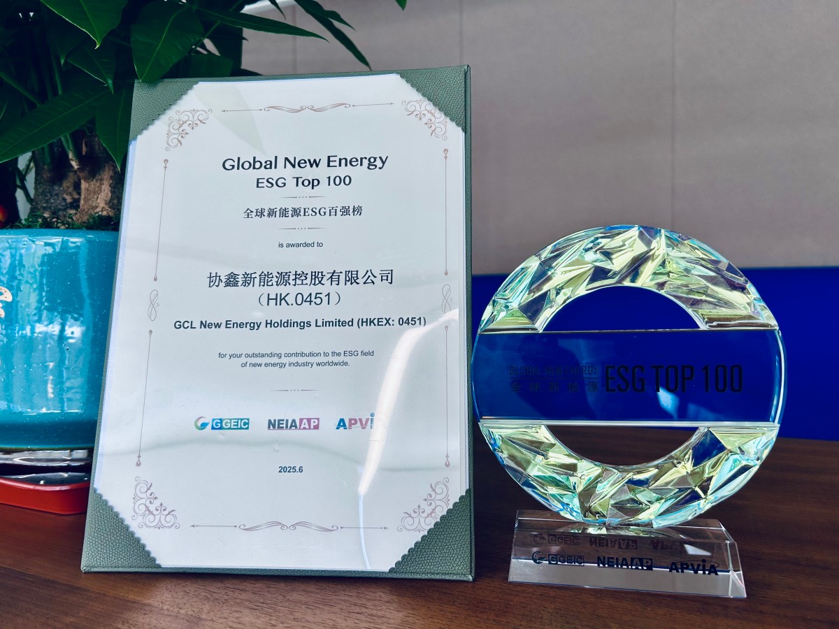 協鑫新能源榮獲全球新能源企業ESG TOP100獎項