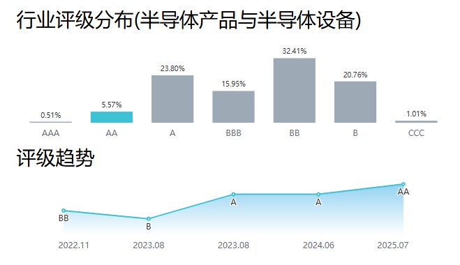 Wind ESG評級以ESG核心內涵為基礎,接軌國際標準和評估框架,根據中國企業發展特色和資本市場現狀,通過科學嚴謹的方法學,預見性地評估企業實質性ESG風險及其可持續經營的能力。根據公司所屬行業具有的ESG風險與機遇,以及相對于同行的績效表現,按照分值區間給公司評為AAA到CCC的結果。協鑫集成在半導體產品與半導體設備行業395家企業中排名第12位,達到行業前3%。